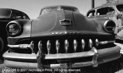 The story is in the patina, the thundering sheets of pressed Detroit steel and the waiting eight beneath the hood. Nicholas A Price’s collection TOO MANY WHEELS breathes life into these forsaken but not forgotten souls.
